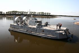 Спуск на воду катера на воздушной подушке "Мурена" на Хабаровском судостроительном заводе.