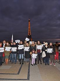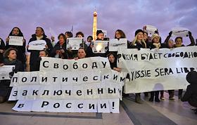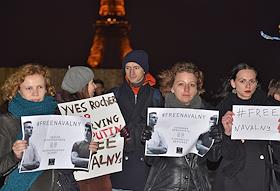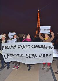 Акция в поддержку братьев Алексея и Олега Навальных на площади Тракадеро в Париже.