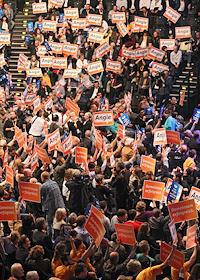 Парламентские выборы (в Бундестаг) в Германии. Штаб лидера партии Христианско-демократический союз,…