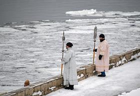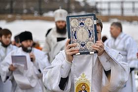 Праздник Крещения Господня. Церемония освящения воды реки Волги. Митрополит Волгоградский и…