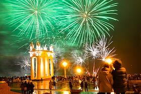 Праздничный салют на центральной набережной в честь 79-й годовщины победы в Сталинградской битве.