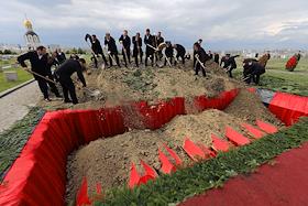 Останки советских солдат, погибших во время Сталинградской битвы, захоронили на мемориальном…