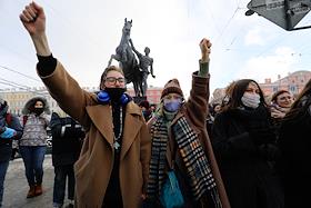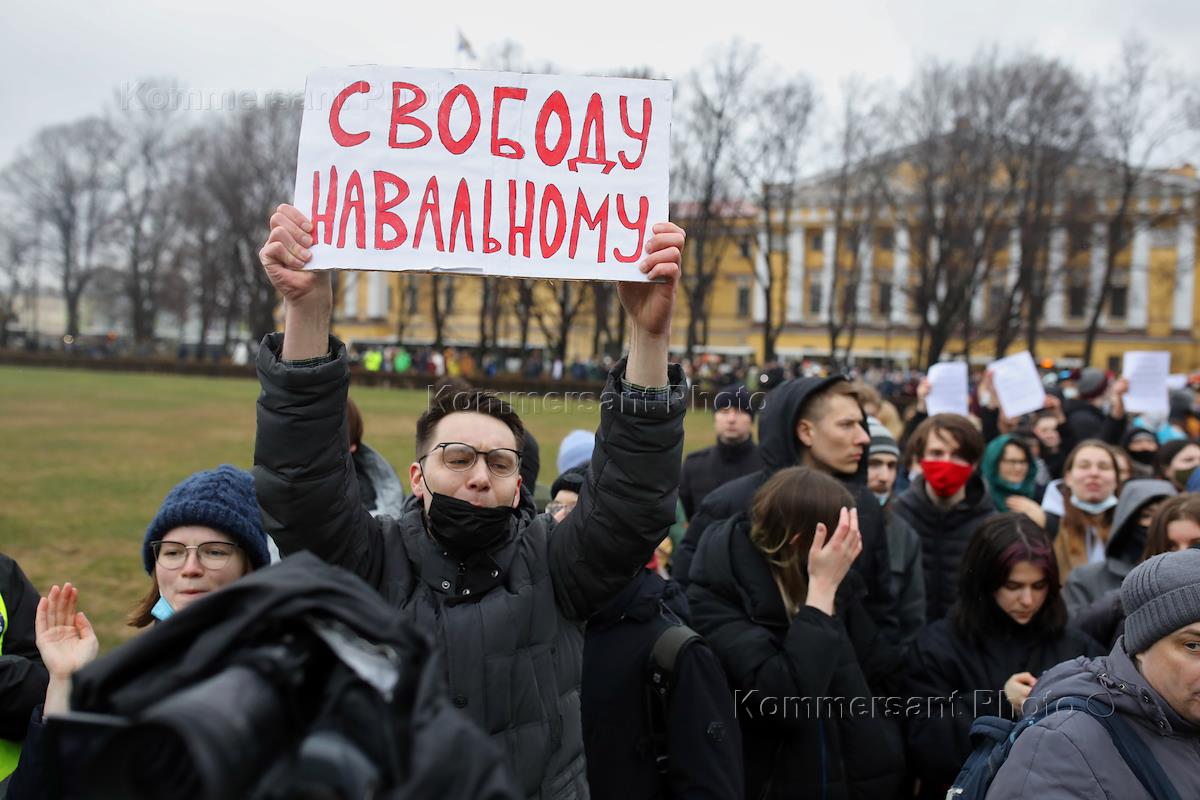 Несогласованная акция в поддержку политика Алексея Навального в центре Санкт-Петербурга