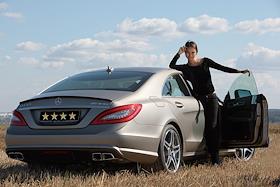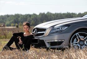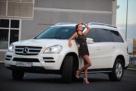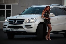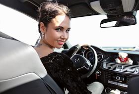 Лисан Утяшева во время тест-драйва автомобиля Mersedes.