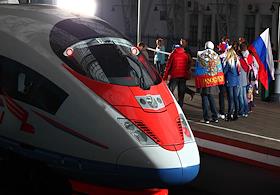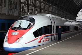 Скоростной поезд-экспресс "Сапсан" на Киевском вокзале.