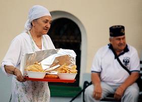 Празднование исламского религиозного праздника Курбан-Байрам в казанской мечети Аль-Марджани.