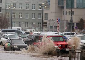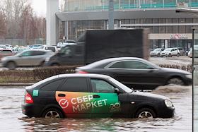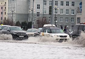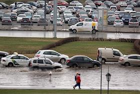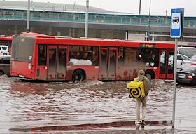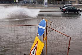 Затопленная площадь Тысячелетия из-за прорыва трубы водопровода.