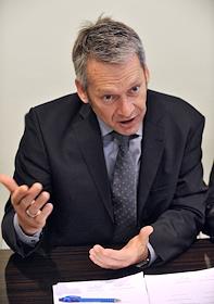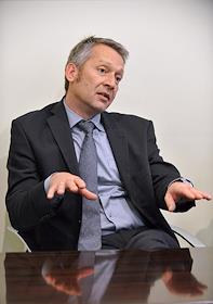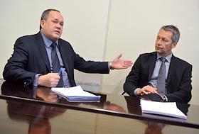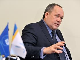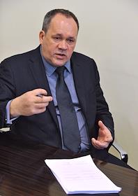Кандидат от партии "Единая Россия" Андрей Войчук во время интервью.