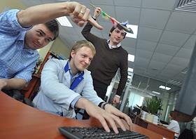 Генеральный директор социальной сети "Доктор на работе" (doktornarabote.ru) Станислав Сажин в офисе…