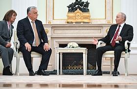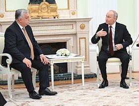 Президент России Владимир Путин встретился с премьер-министром Венгрии Виктором Орбаном в Кремле.