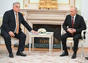 Президент России Владимир Путин встретился с премьер-министром Венгрии Виктором Орбаном в Кремле.