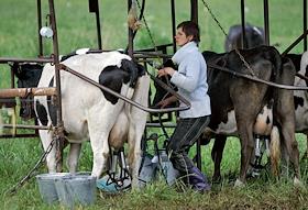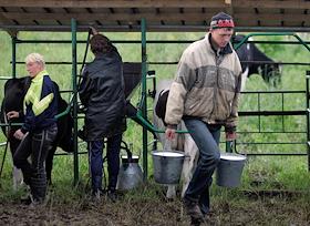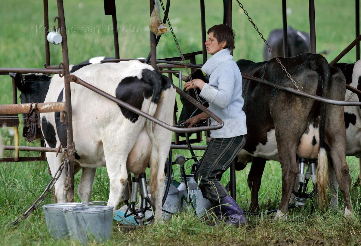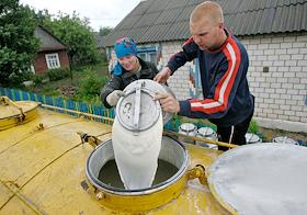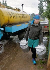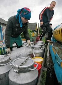 Жители деревни сдают молоко из подсобных хозяйств сельскохозяйственному кооперативу