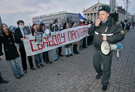 Несанкционированный митинг оппозиционных партий на Октябрьской площади в поддержку политзаключенных