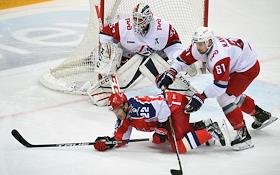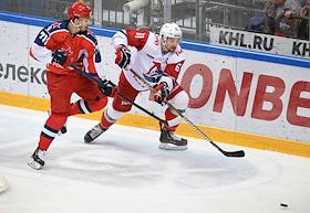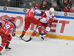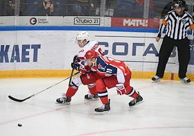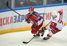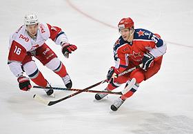 Континентальная хоккейная лига (КХЛ). Матч между командами ЦСКА (Россия, Москва) и "Локомотив"…