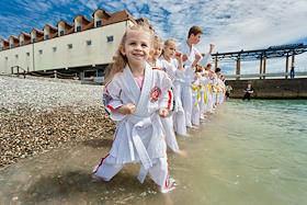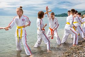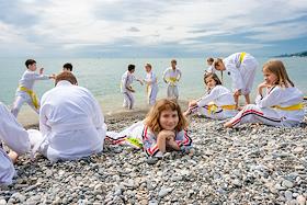 Тренировка детской-юношеской спортивной школы №10 на берегу моря в Сочи.