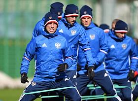 Тренировка сборной России по футболу перед матчем со сборной командой Литвы.