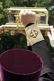 Священник с фотоаппаратом на молебне в честь Святой десницы Святого Иоанна Крестителя в аэропорту г.…