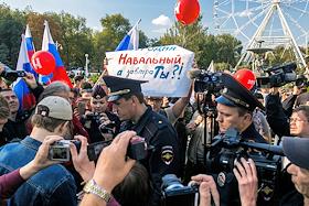 Несогласованная акция сторонников Навального, проходившая на Театральной площади.