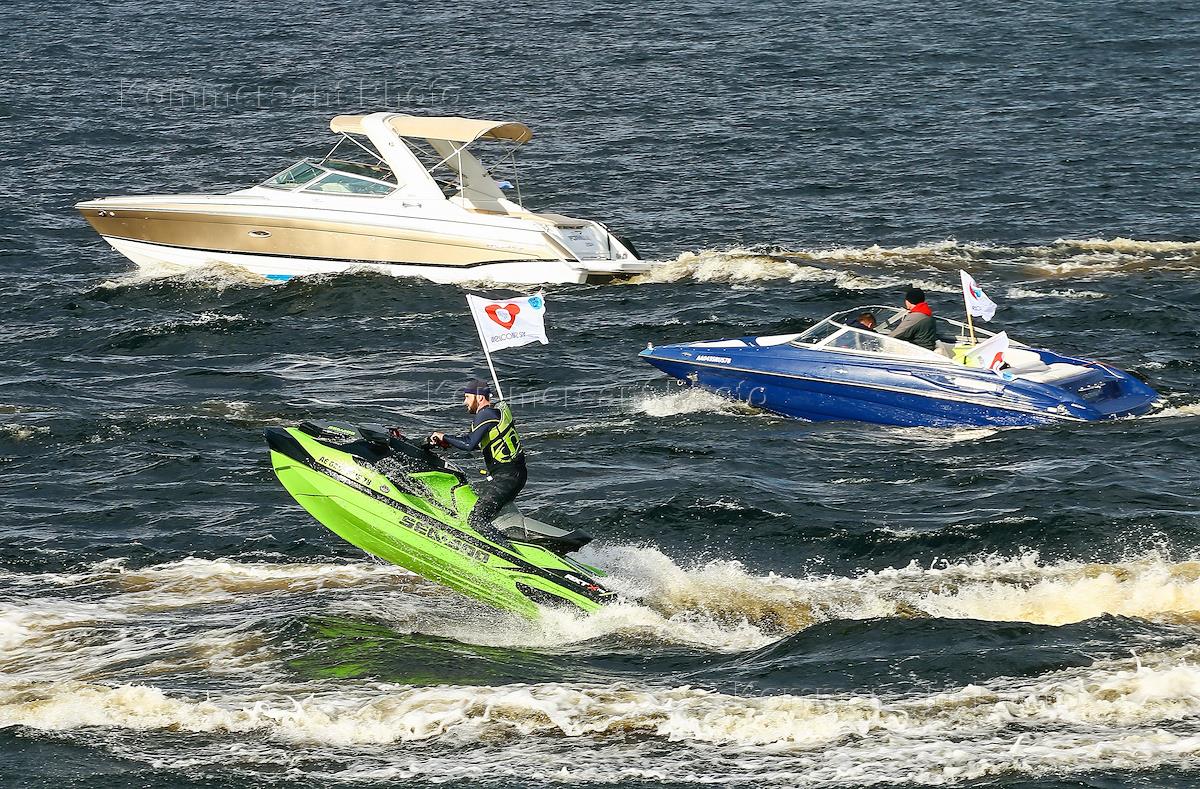 Водный флешмоб на Неве при участии маломерных судов.