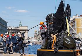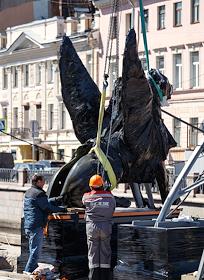 Возвращение скульптур грифонов на Банковский мост.