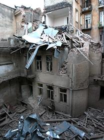 Последствия взрыва в центре Львова в жилом доме возле Львовского университета на ул. Костюшко, 14.