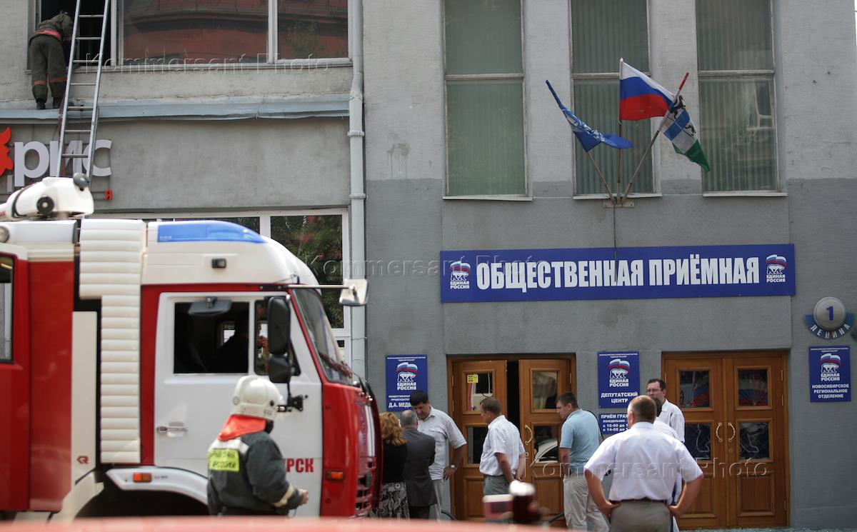 Пожар в общественной приемной лидера партии «Единая Россия» Дмитрия Медведева по адресу ул. Ленина,…