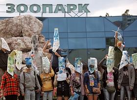 Перфоманс в поддержку панк-группы Pussy Riot в Новосибирске. Молодые люди в бумажных масках стихийно…
