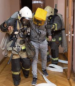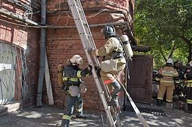 Пожарно-тактические учения МЧС в здании администрации города Астрахань.