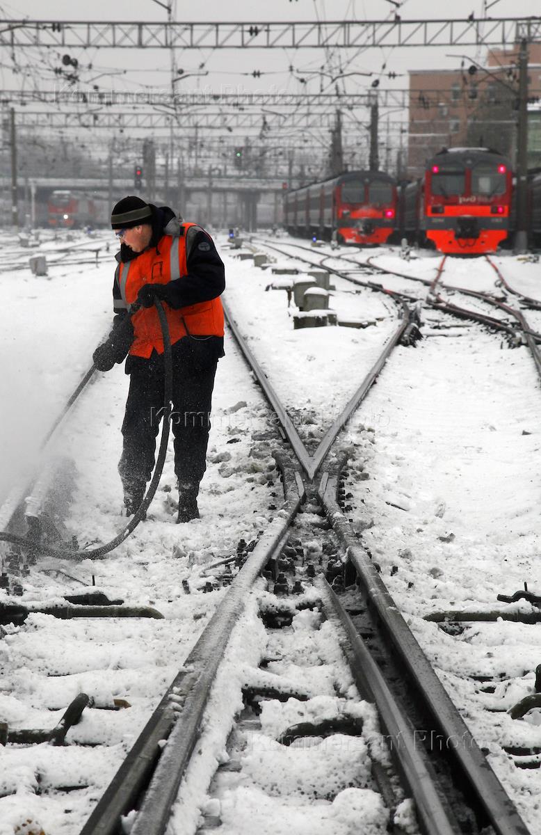 Пневмообдувка стрелочных переводов на путях Казанского вокзала.