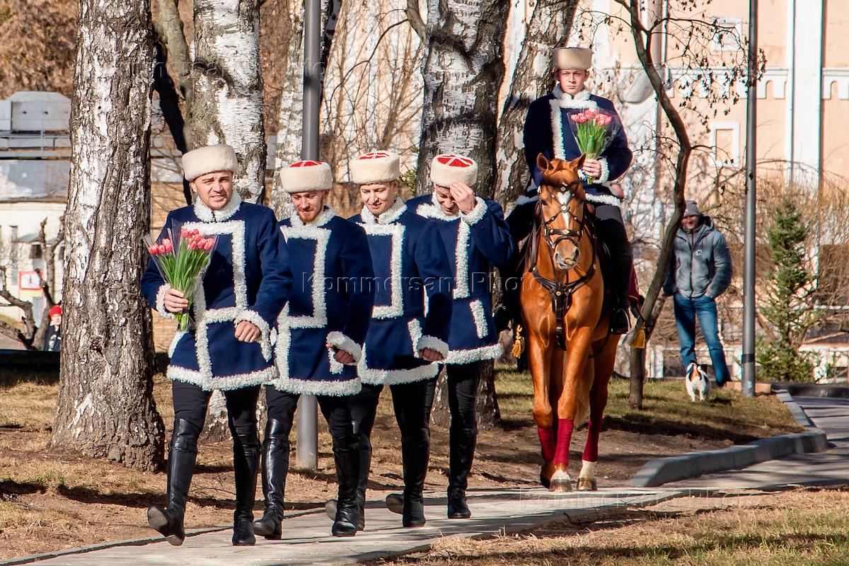 Всадники Кремлевской школы верховой езды поздравляют прекрасных дам с Международным женским днем…