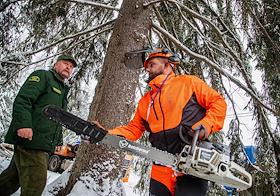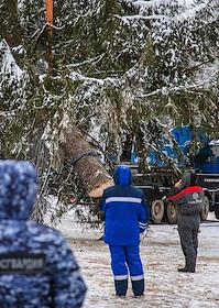 Церемония спила главной новогодней ели в лесу у деревни Знаменка Можайского городского округа…