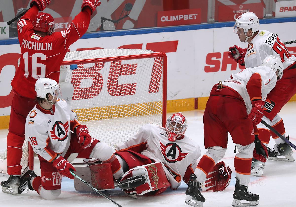 Континентальная Хоккейная Лига (КХЛ). Матч между командами "Спартак" (Москва) - "Автомобилист"…