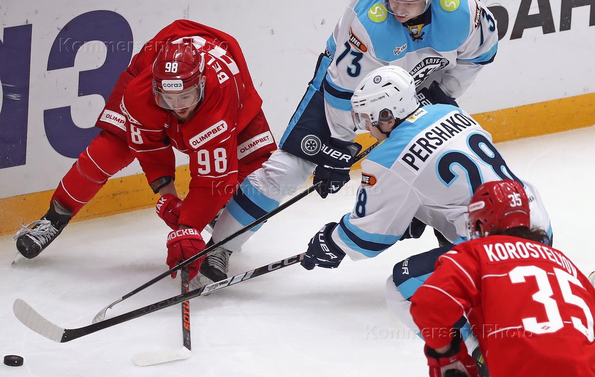 Континентальная Хоккейная Лига (КХЛ). Матч между командами "Спартак" (Москва) - "Сибирь"…