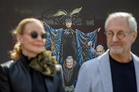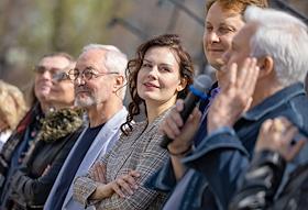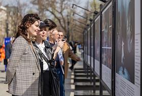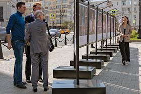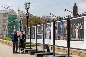 Фотовыставка на Тверском бульваре, приуроченная к 100-летию Московского академического театра сатиры.