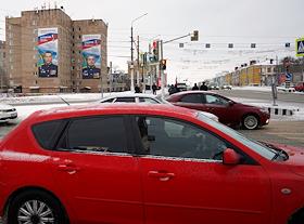 Портреты военнослужащих Российской Федерации на фасаде дома.