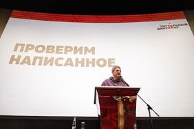 Всероссийская акция "Тотальный диктант" в кинотеатре "Победа". Текст читал Максим Кучеренко (группа…