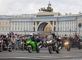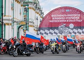 Церемония открытия мотосезона 2023 в Санкт-Петербурге на Дворцовой площади.