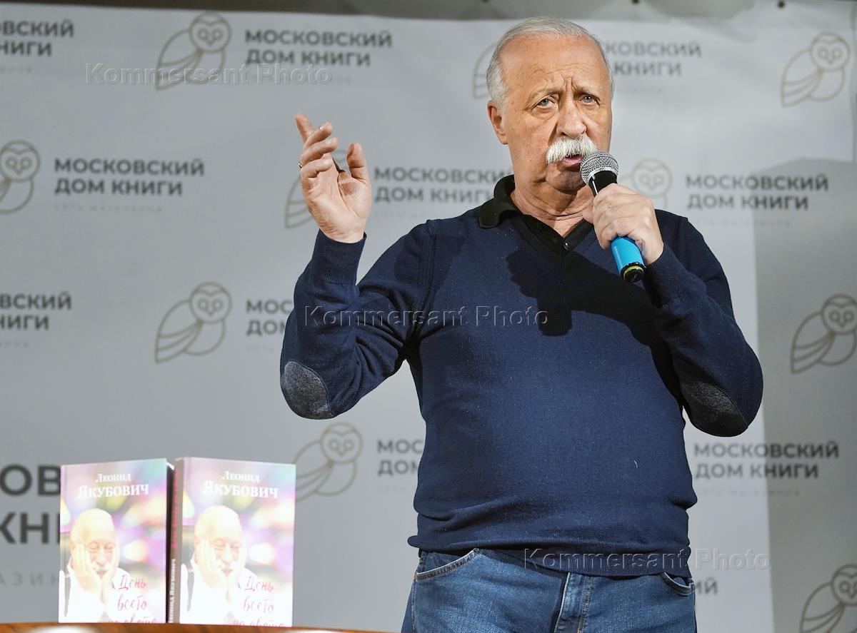 Телеведущий, актер Леонид Якубович во время презентации своей книги "День всего на свете" в…