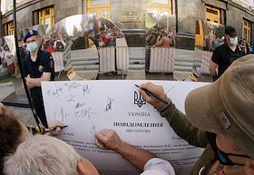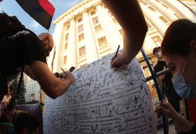 В Киеве возле Офиса президента Украины состоялась акция "Государственная измена. Объявление…