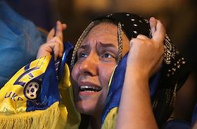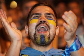 Болельщики сборной Украины во время просмотра матча между сборными Украины и Англии в киевской…