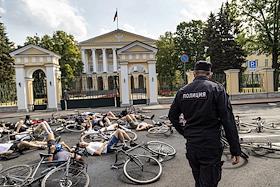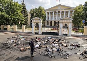 Акция Петербургских велосипедистов перед зданием администрации Санкт-Петербурга (Смольный) в память…