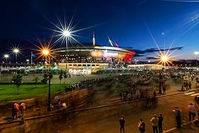 Болельщики на выходе со стадиона Газпром Арена после матча Чемпионата Европы 2020 между сборными…