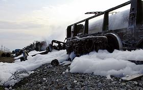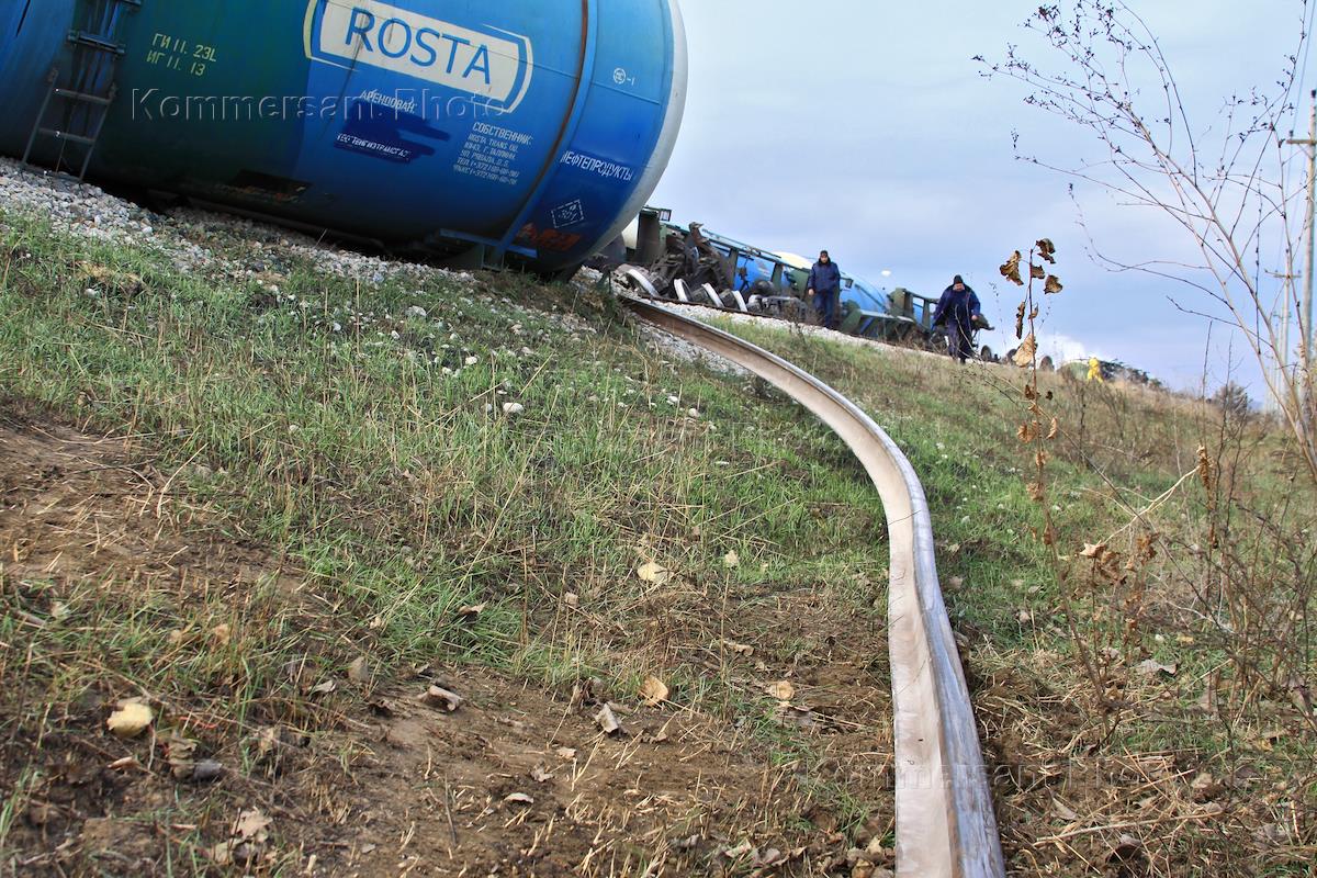 Катастрофа в Темрюкском районе Краснодарского края. Место крушения поезда с двадцатью цистернами с…