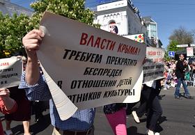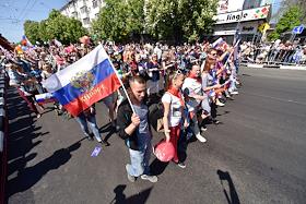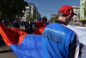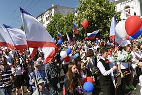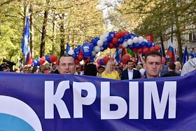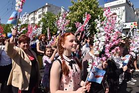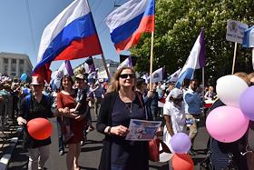 День международной солидарности трудящихся. Традиционное первомайское шествие в городе Симферополь.