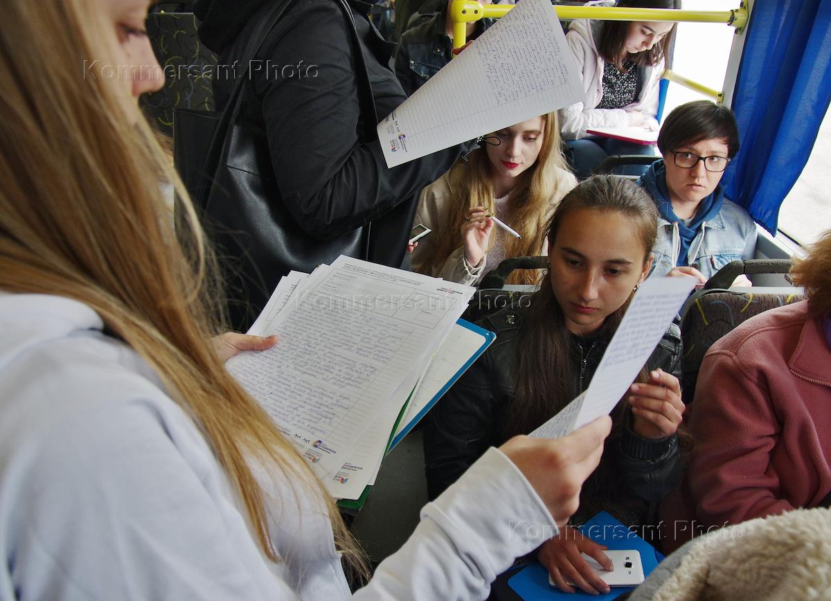 Акция по проверке грамотности "Тотальный диктант-2017" в троллейбусе на трассе Симферополь - Алушта.