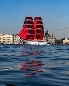 Бриг "Россия" на причале в акватории Невы напротив Петропавловской крепости во время подготовки к…