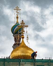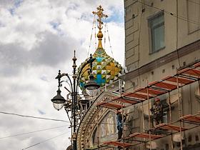 Реконструкция здания на Конюшенной пл., 2, литера Д. Вид на фоне куполов храма Спаса на Крови.