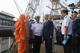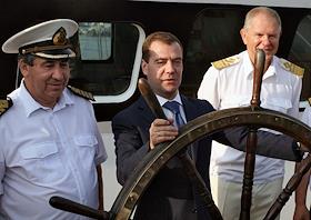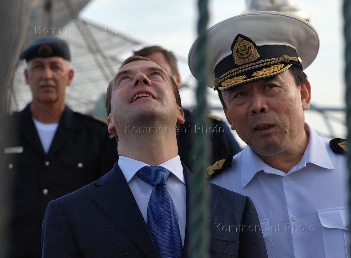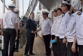 Президент Дмитрий Медведев посетил парусник "Паллада" который отправляется из Владивостока в…