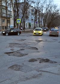 Разбитая дорога не пересечении улиц Скляренко и Панова в Самаре