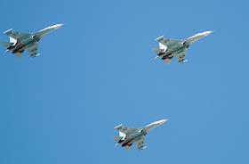 Празднование дня Военно-морского флота России. Воздушная часть парада.